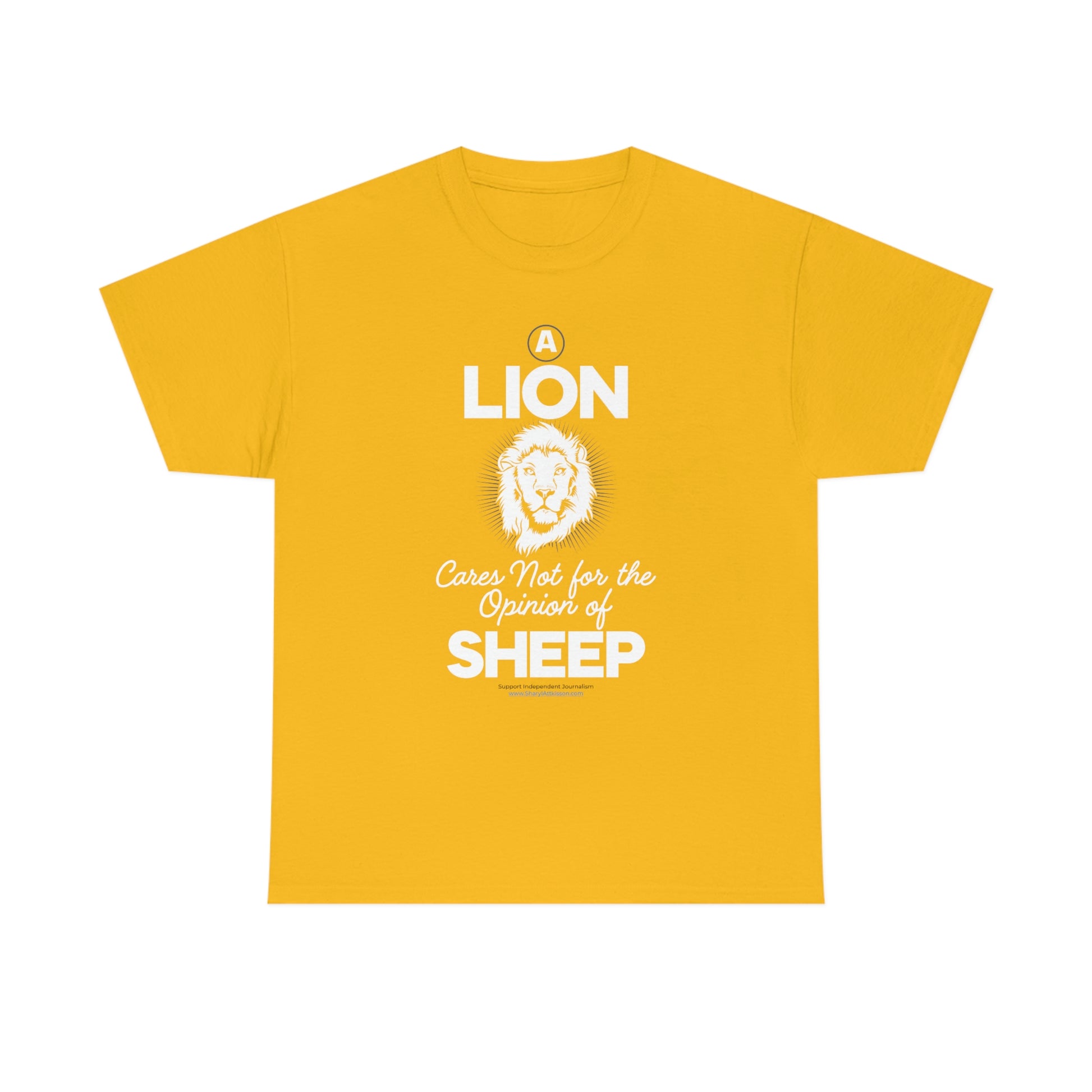 Show you're an independent thinker with this comfy, cotton T-shirt that reads, "A Lion Cares Not For The Opinions Follow Of Sheep." It's also a great gift for any free thinkers among your family and friends. Support independent journalism and let people know where you stand!