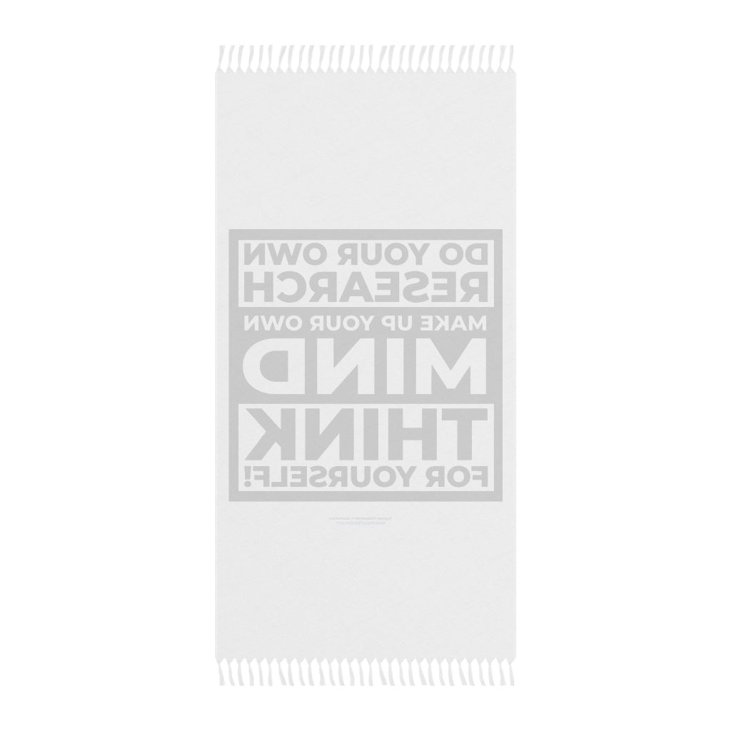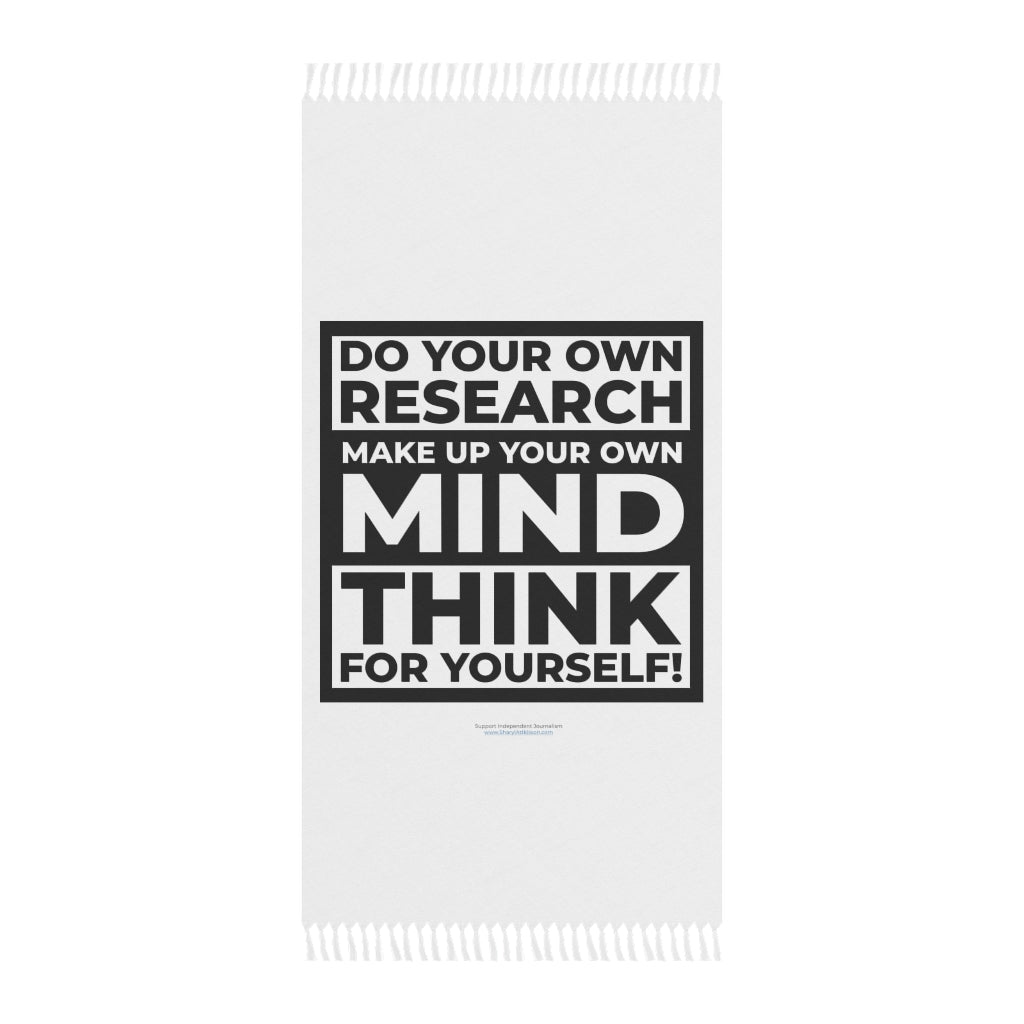 This is truly a statement piece for the beach or the pool! This oversized lightweight, thin beach sheet boasts the Sharyl Attkisson motto and tagline: "Do your own research, make up your own mind, think for yourself." More than 3' wide and over 6' long, it has knotted tassels and is made with 100% soft polyester-- perfect to cover a pool chair, sit on at the beach or for a picnic, or even cover yourself when it's chilly! Check out our statement beach towels, too!