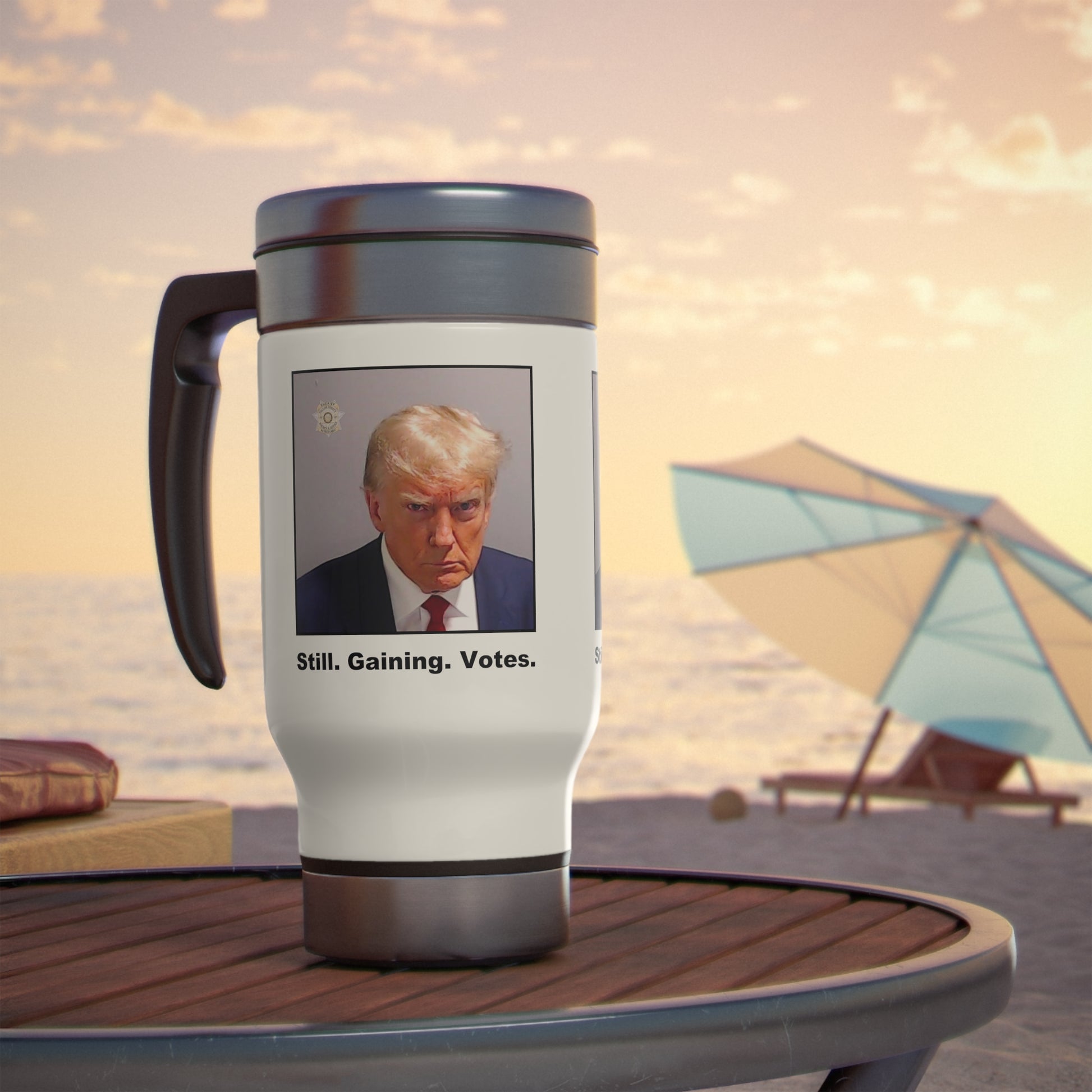 Trump Mugshot Travel Mug (Color): 'Still. Gaining. Votes.'